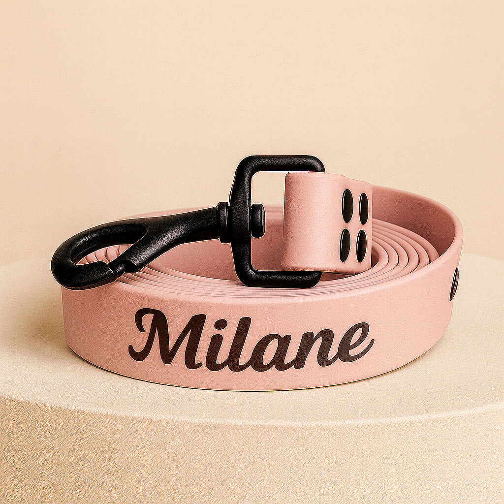 • Personalization: name engraved on the leash (e.g., Mallow, Bobby, Nala… )