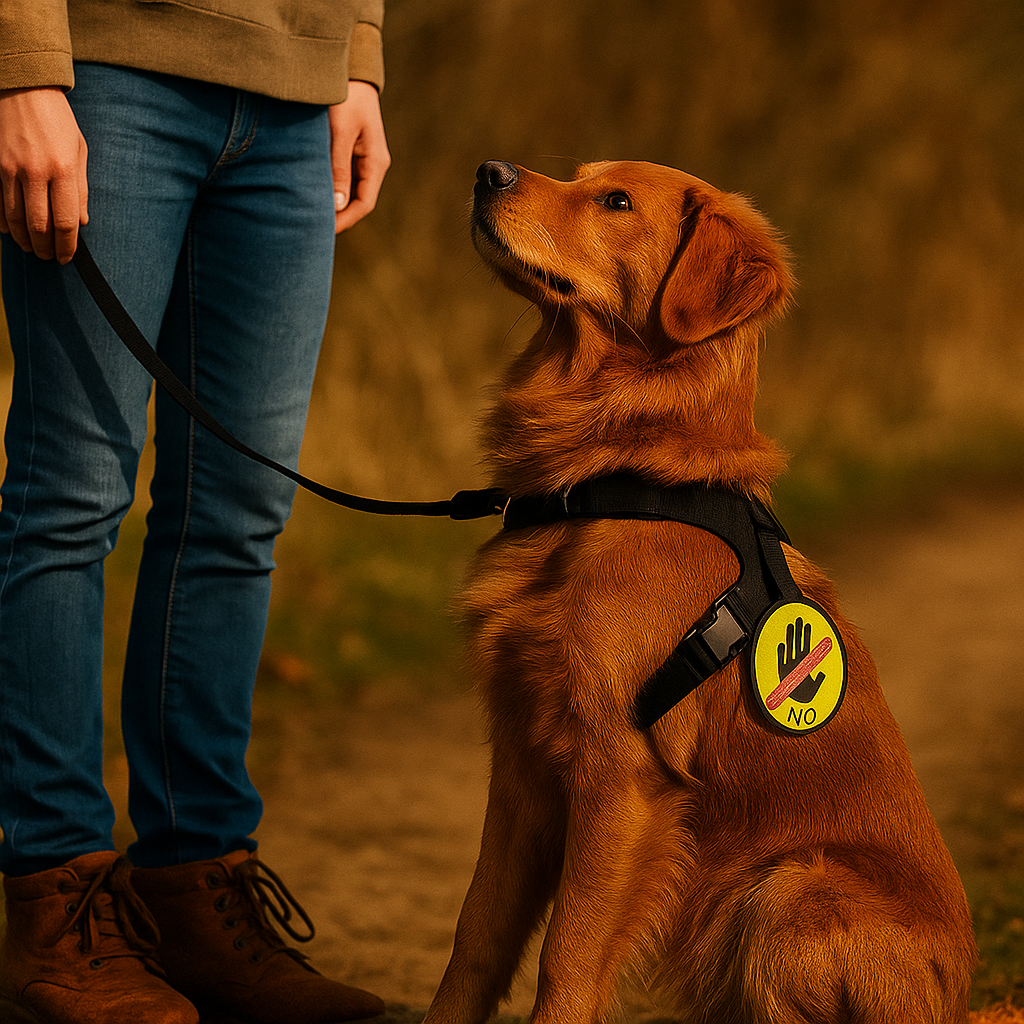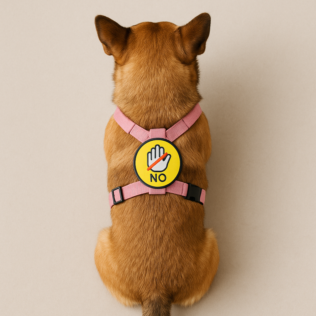 Thanks to its clear and elegant design, it indicates that your companion does not like to be approached, petted or handled without permission .